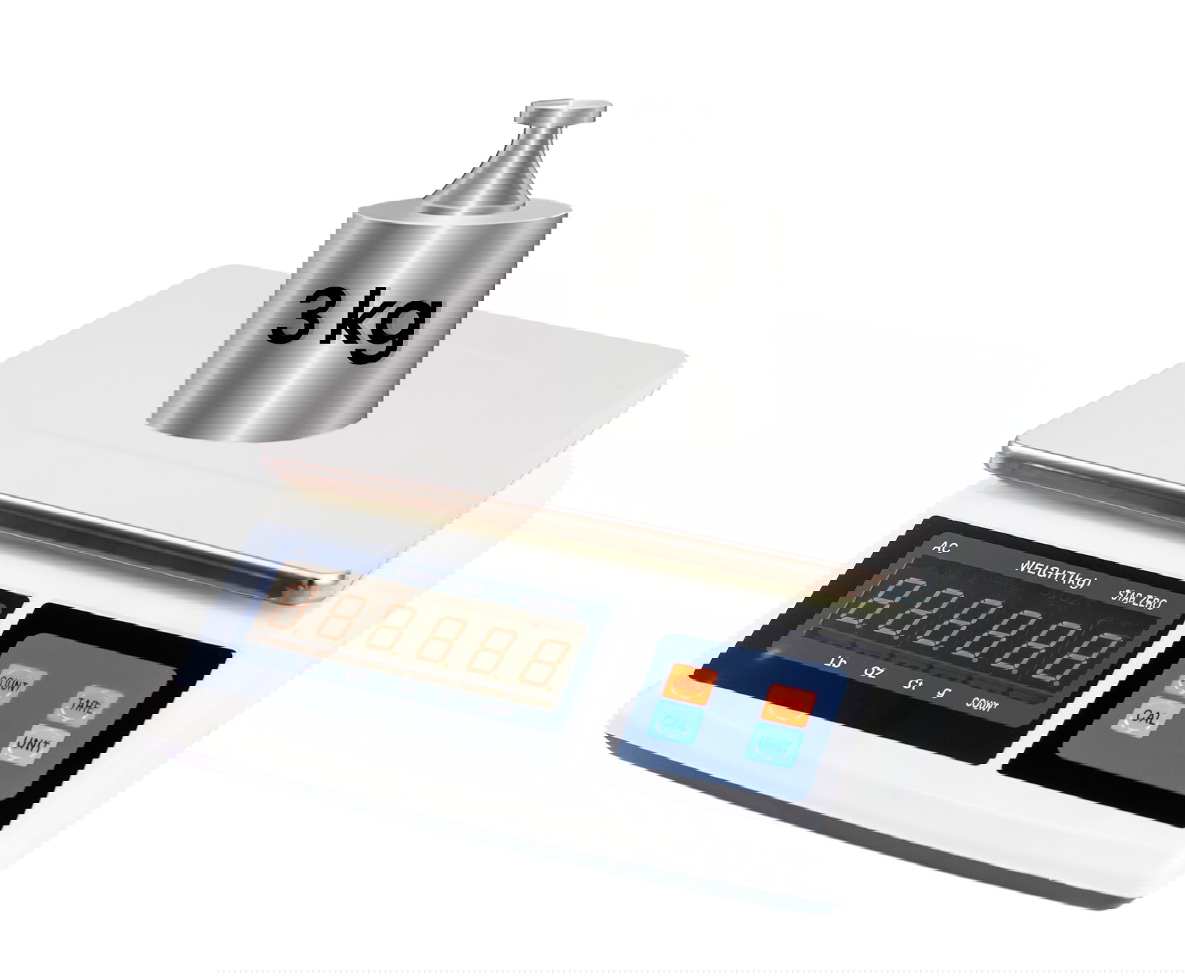 Die Waage ist mit einer stabilen Metallplattform ausgestattet. Für einfache Bedienung im Alltag sorgt eine numerische Tastatur mit Funktionstasten, die die Dateneingabe erleichtert. Drei digitale Anzeigen bieten klare Übersicht über die Werte.