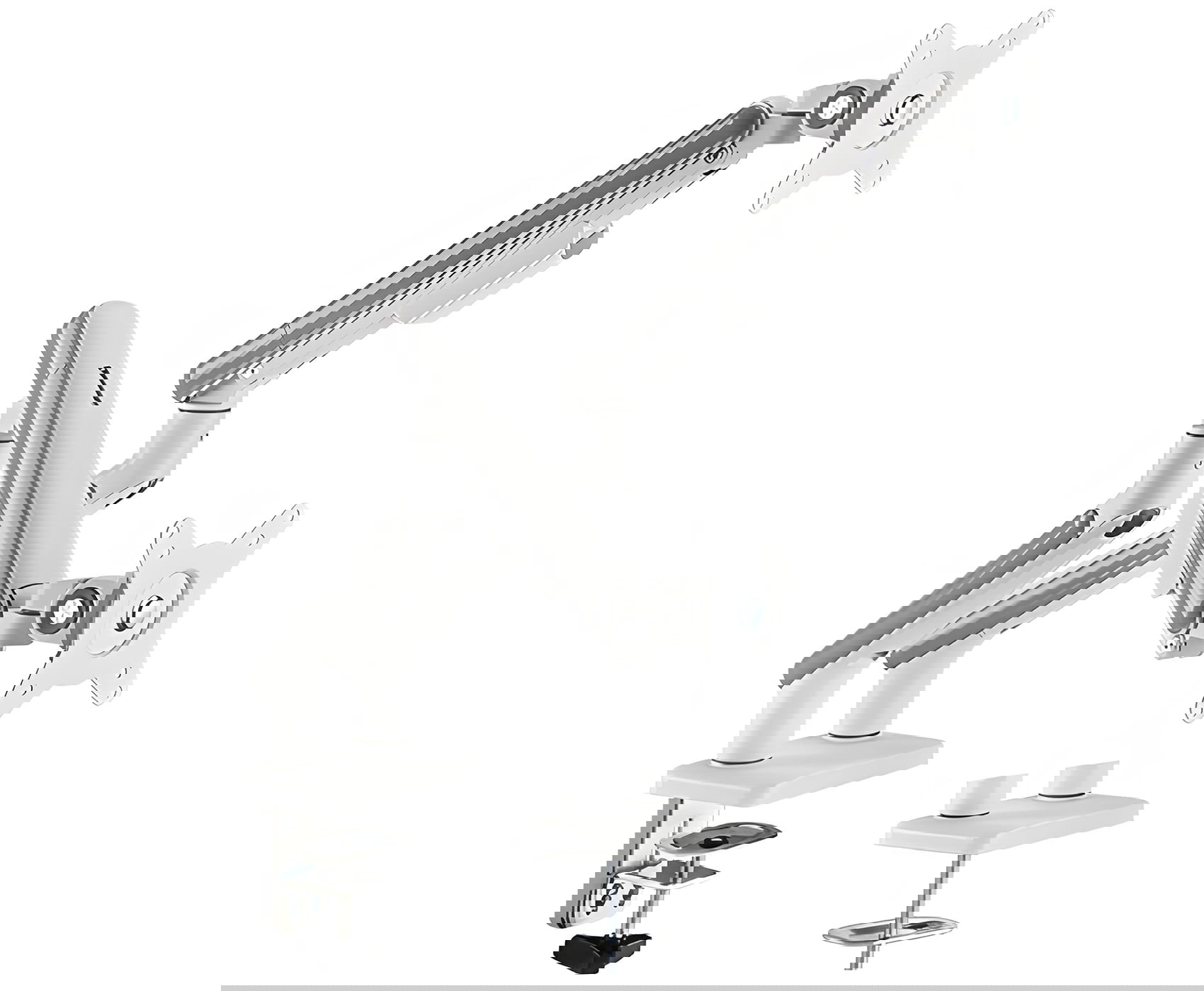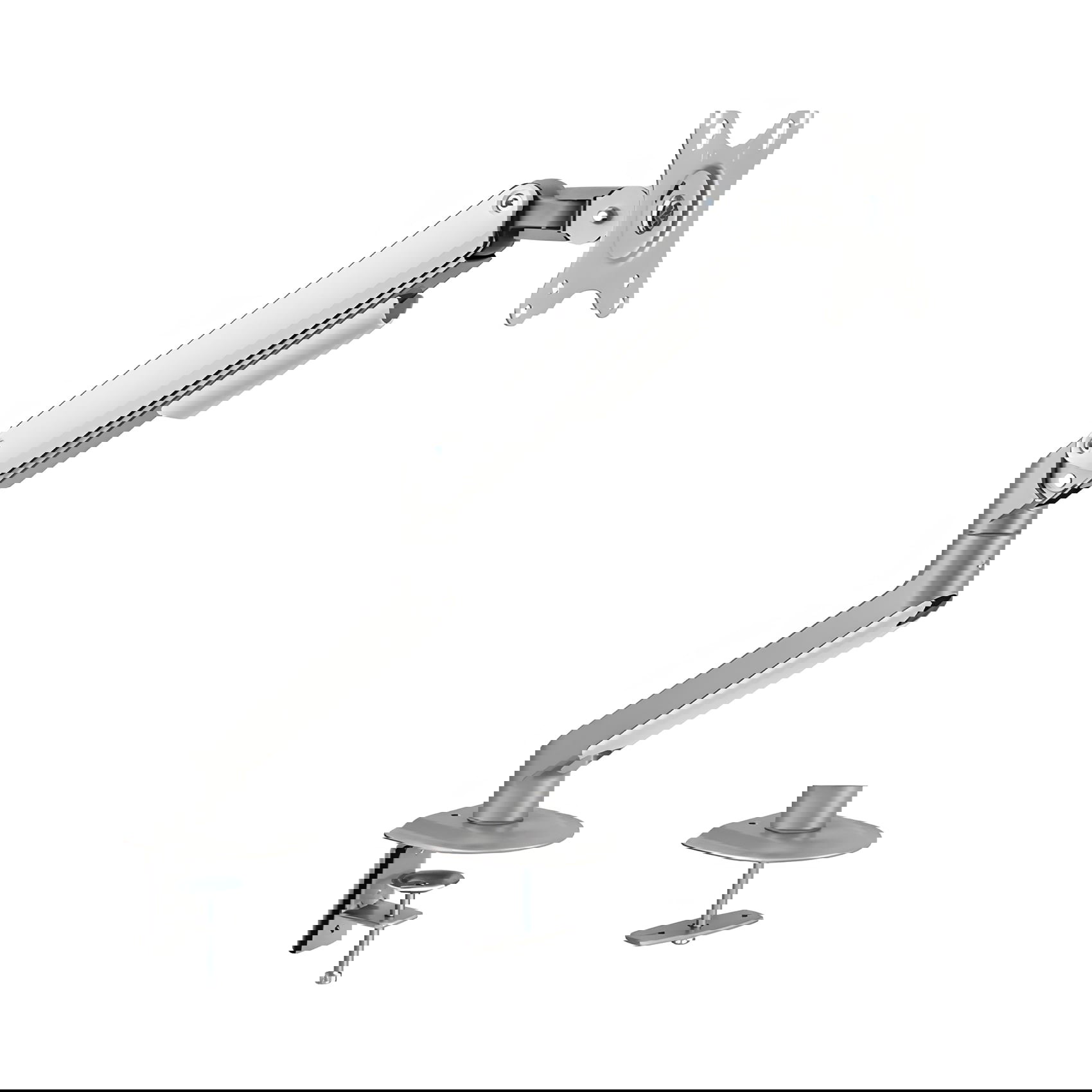 Die Arme der Halterung sind mit einer mechanischen Feder ausgestattet, die eine einfache und präzise Positionierung des Monitors ermöglicht. Der Halter erlaubt eine Drehung des Monitors um 180 Grad sowie Neigungs- und Schwenkfunktionen – ganz nach individuellen Bedürfnissen. Besonders praktisch ist die Tilt-Funktion, mit der der Arm um 90 Grad gedreht und der Bildschirm vertikal ausgerichtet werden kann.