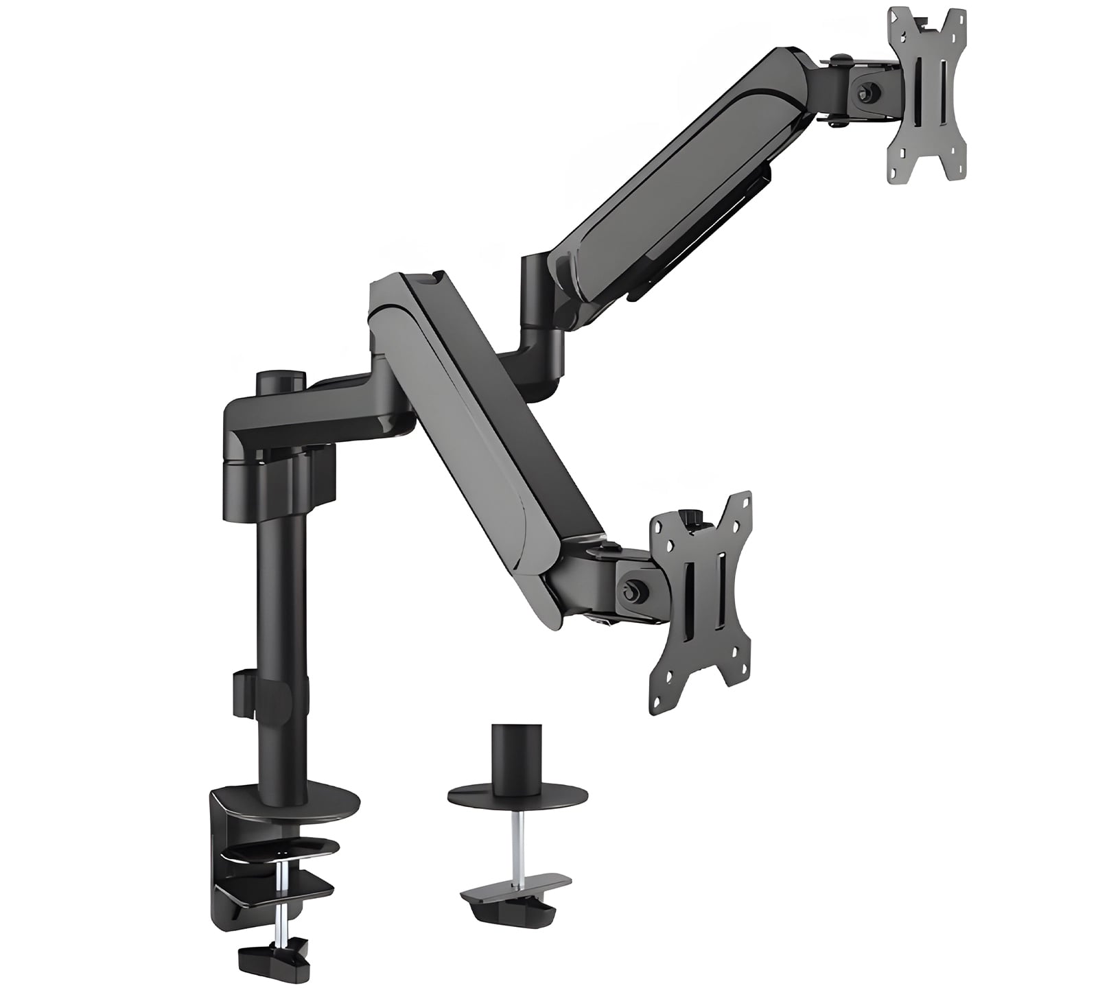 Die Dual-Monitor-Halterung für den Schreibtisch SolidHand-UM02 ist eine praktische Lösung zur stabilen Befestigung von zwei Monitoren, wodurch wertvoller Arbeitsbereich eingespart wird. Die Halterung aus hochwertigem Stahl gewährleistet eine sichere Befestigung von Monitoren mit einer Größe von 13 bis 27 Zoll und einem Gewicht von bis zu 8 kg pro Stück.