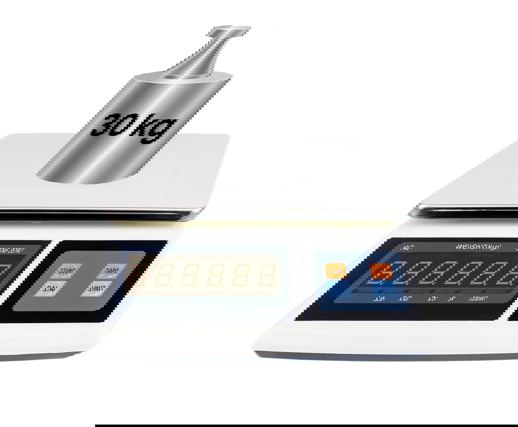 Die Waage ist mit einer soliden Metallplattform ausgestattet, auf der die Gegenstände platziert werden. Die einfache Bedienung im Alltag wird durch vier Tasten neben dem Display unterstützt, mit denen zusätzliche Funktionen bequem gesteuert werden können. Das Display sorgt für eine klare Anzeige der Messergebnisse aus jedem Blickwinkel – selbst bei schlechten Lichtverhältnissen – und erleichtert so die Gewichtskontrolle jederzeit.