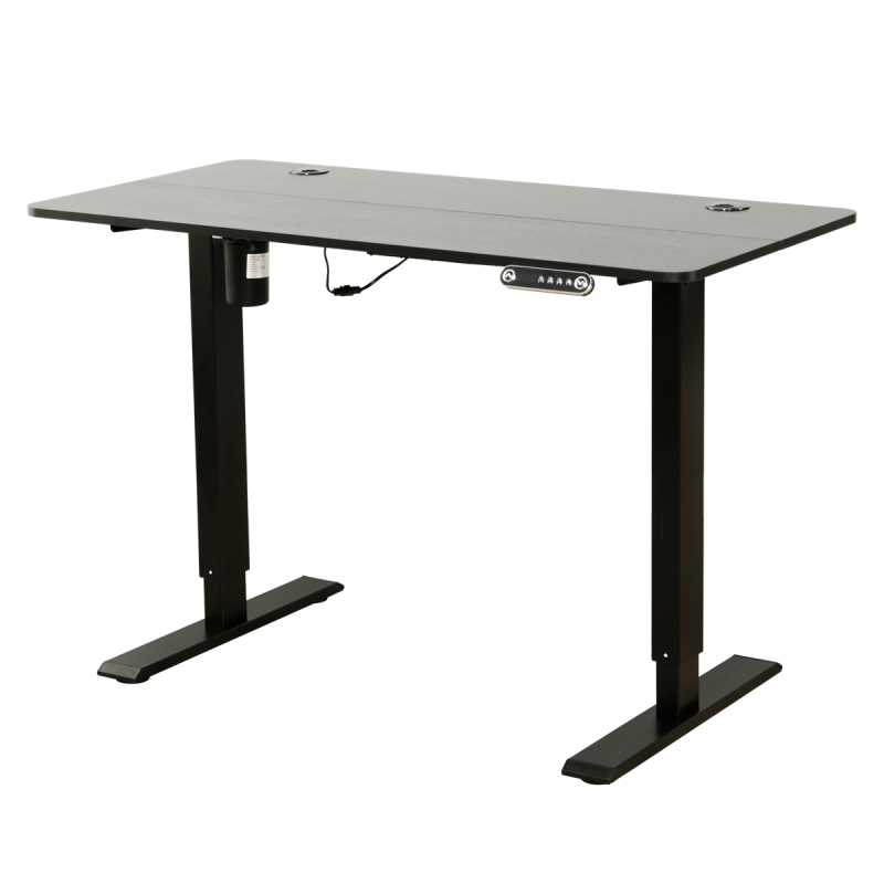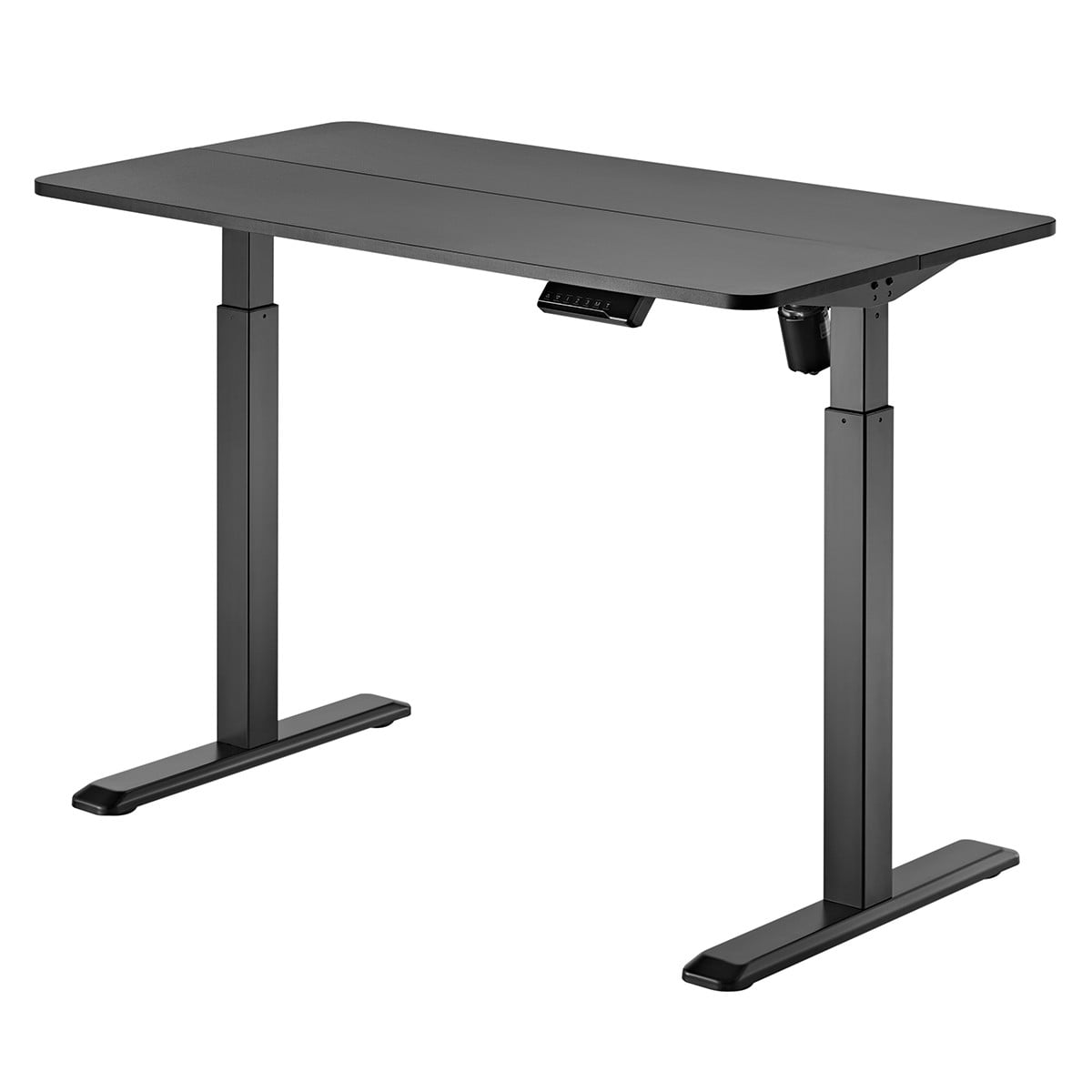 Das deskTOP-21 Schreibtisch mit elektrischer Höhenverstellung ist eine moderne Lösung, die die tägliche Arbeit erleichtert. Das Möbelstück wird mit einem mitgelieferten Netzteil betrieben. Der pulverbeschichtete Rahmen des Schreibtisches und die schwarze Tischplatte machen das Möbelstück ideal für Zuhause, Büros und verschiedene Arten von Behörden.