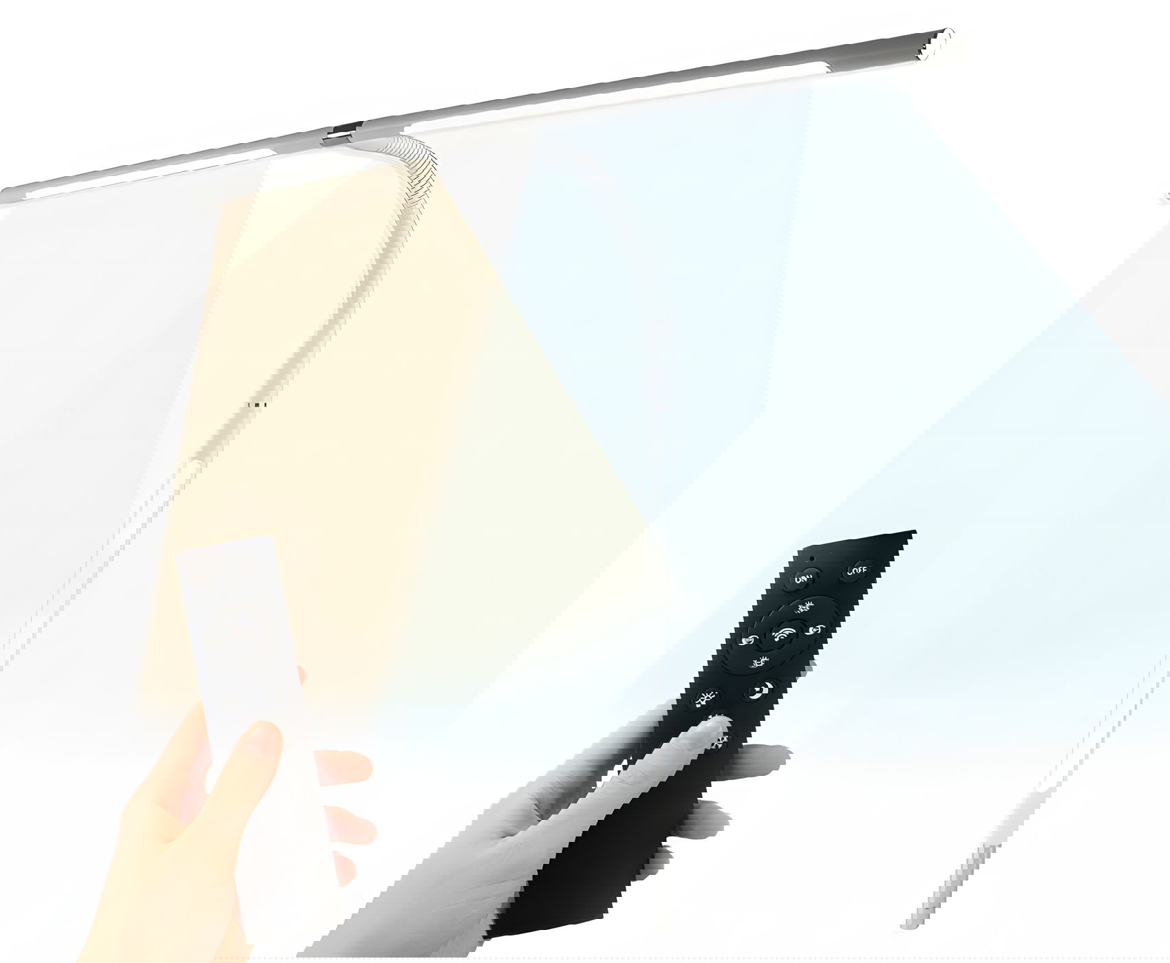 Die Lampe ist mit einer Fernbedienung ausgestattet, mit der die Helligkeit und Farbtemperatur aus bis zu 3 Metern Entfernung einfach reguliert werden können, ebenso wie das Ein- und Ausschalten des Lichts. Diese Funktion sorgt für maximalen Komfort und Bequemlichkeit, sodass die Arbeit ohne Aufstehen fortgesetzt werden kann.