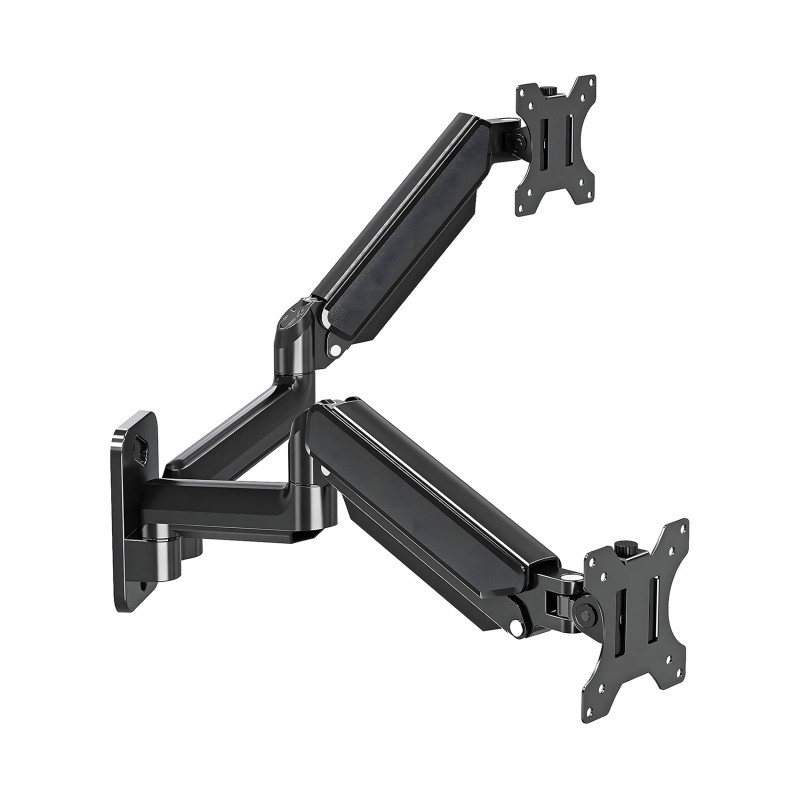 Die Monitorarme sind mit Gasfedern ausgestattet, die eine reibungslose und präzise Einstellung beider Monitore in der gewünschten Position ermöglichen. Jeder Monitor kann um 180 Grad gedreht und der Neigungswinkel individuell angepasst werden. Ein zusätzlicher Vorteil ist die Tilt-Funktion, mit der sich die Arme um 90 Grad drehen lassen – ideal für den Einsatz im Hochformat.