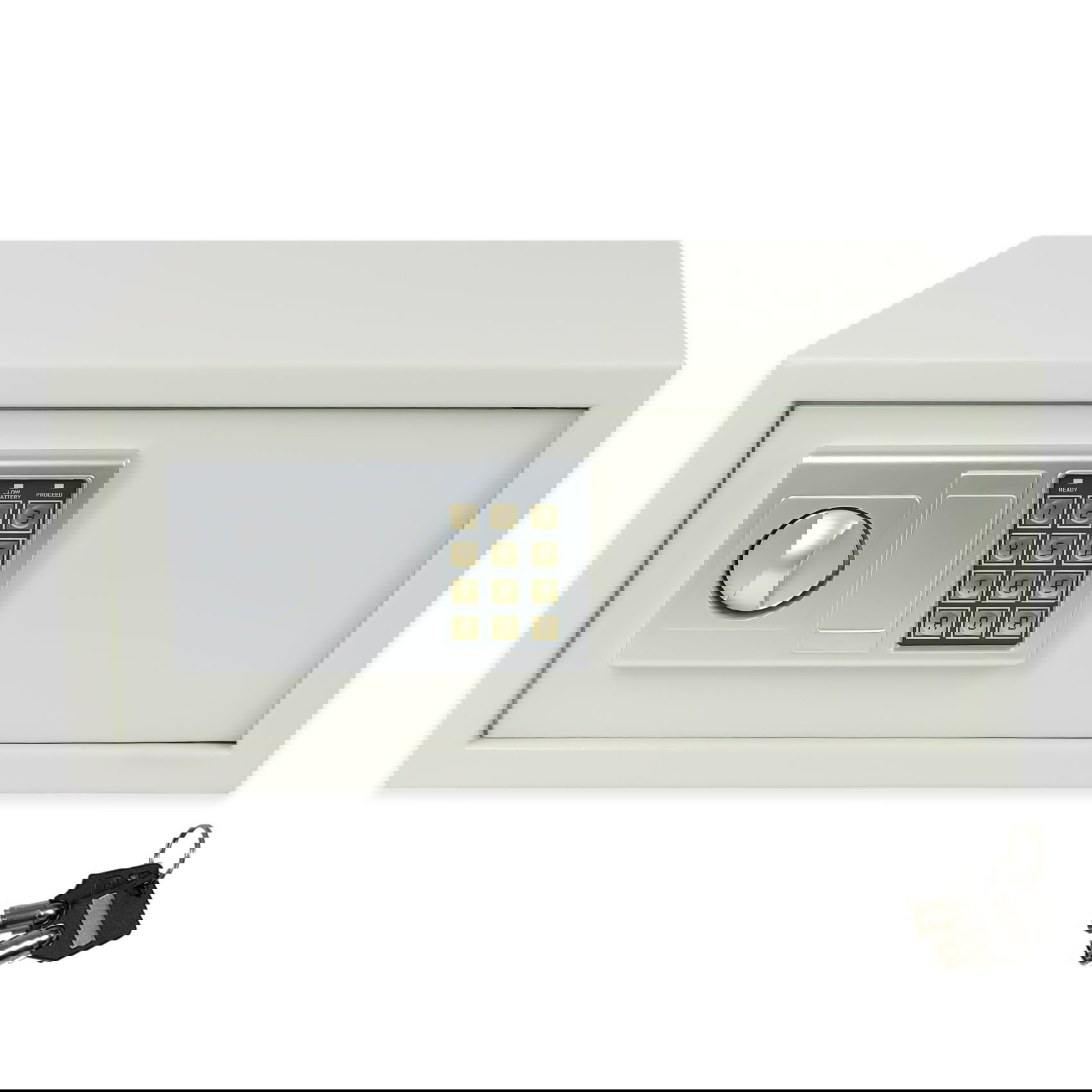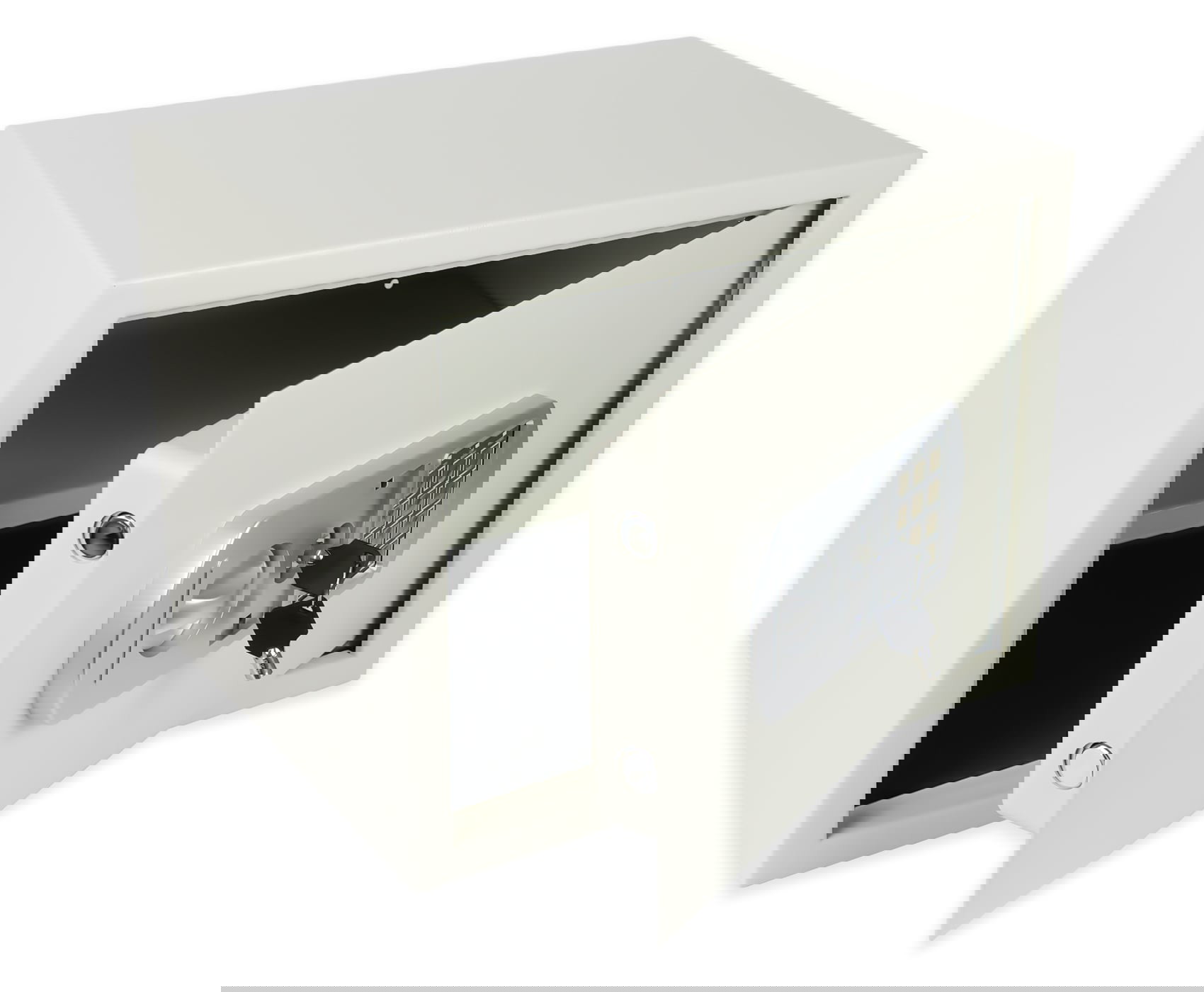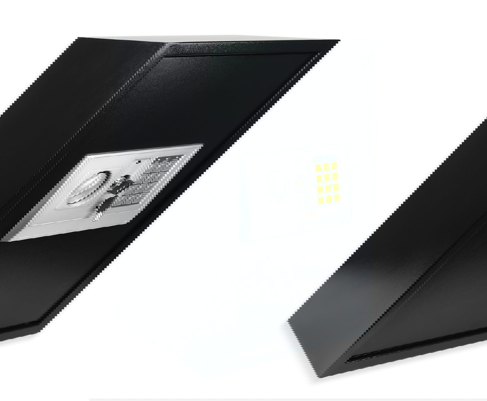 Der Tresor ist mit einem mechanischen Schlüsselschloss und einem elektronischen PIN-Code-Schloss ausgestattet, das die Eingabe eines persönlichen Codes mit 3 bis 8 Ziffern erlaubt. Dadurch bietet er ein hohes Maß an Sicherheit und Benutzerkomfort im Alltag. Das elektronische Bedienfeld wird mit 4 × AA-Batterien betrieben (nicht im Lieferumfang enthalten), was eine unabhängige Nutzung ohne externe Stromquelle ermöglicht. Zusätzlich ist der Safe mit Montagebohrungen und einem Schraubenset ausgestattet, was eine sichere Befestigung an Wand, Boden oder Möbelstücken erlaubt – für noch besseren Schutz der eingelagerten Gegenstände.