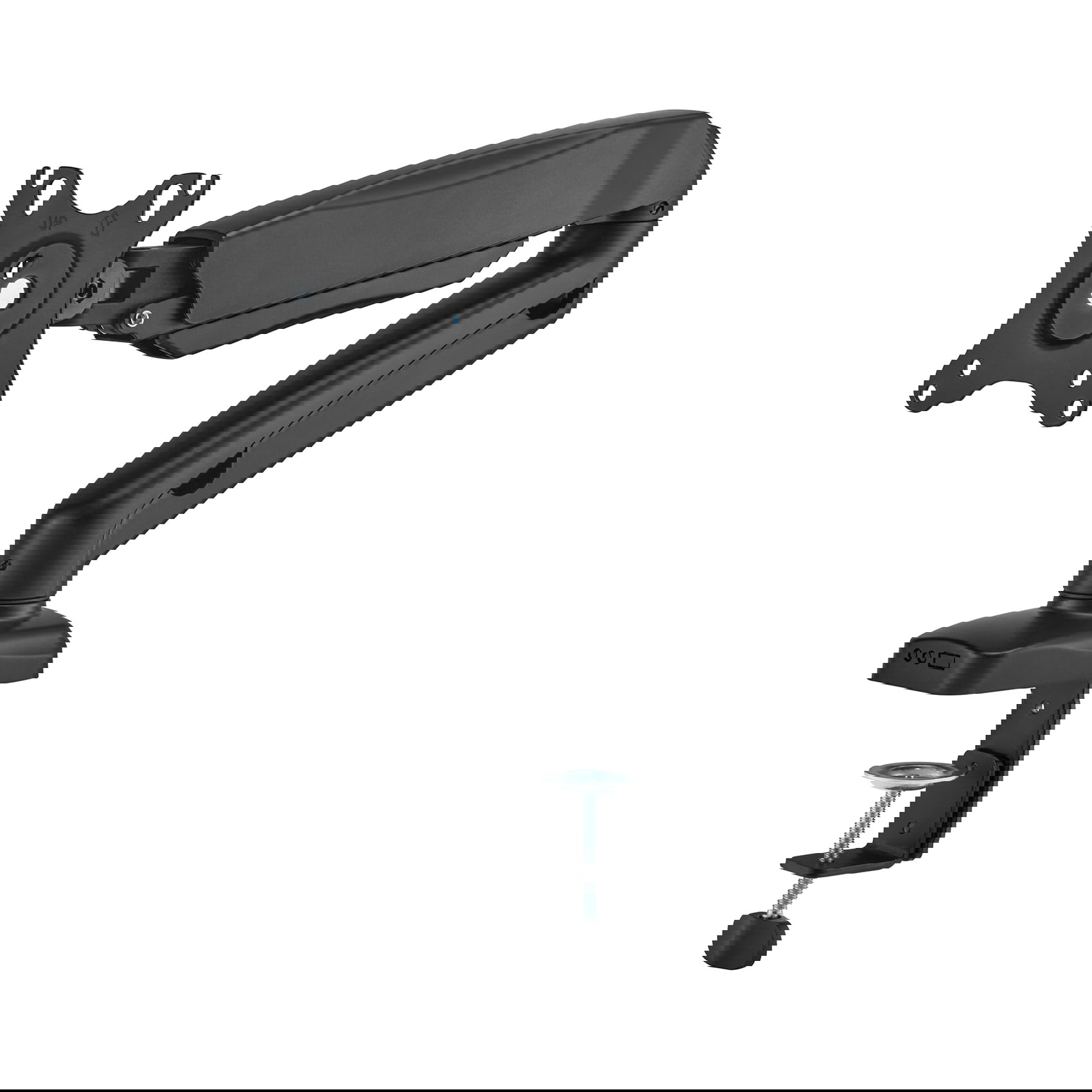 Der federunterstützte Arm ermöglicht eine sanfte und präzise Einstellung des Monitors auf eine angenehme Höhe. Der Arm erlaubt eine 180°-Bildschirmdrehung, eine Neigungsverstellung von +90° bis -45° und eine Höhenverstellung durch Drehen des Arms um 90°. Dank dieser Funktionen lässt sich der Monitor optimal an die individuellen Bedürfnisse des Nutzers anpassen.