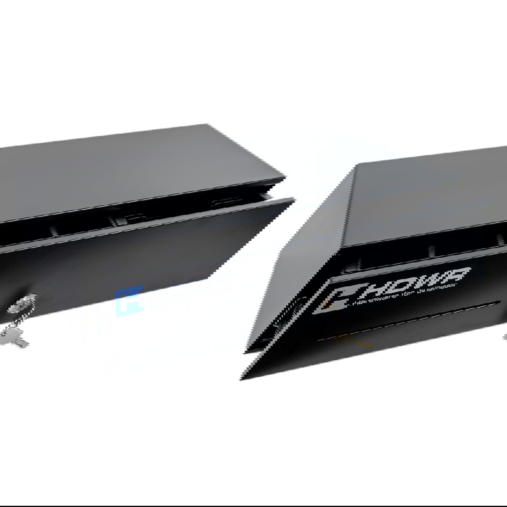 Die Kassenschublade wurde mit drei zuverlässigen Öffnungsmethoden ausgestattet: manuell mit dem Schlüssel, im Notfall über den Hebel an der Unterseite sowie elektronisch nach Anschluss an eine Registrierkasse über ein RJ12-Kabel. Diese Lösung gewährleistet volle Kontrolle über den Zugang und die Sicherheit der Geldmittel und ermöglicht gleichzeitig die Anpassung der Bedienung an die Bedürfnisse des Benutzers.
